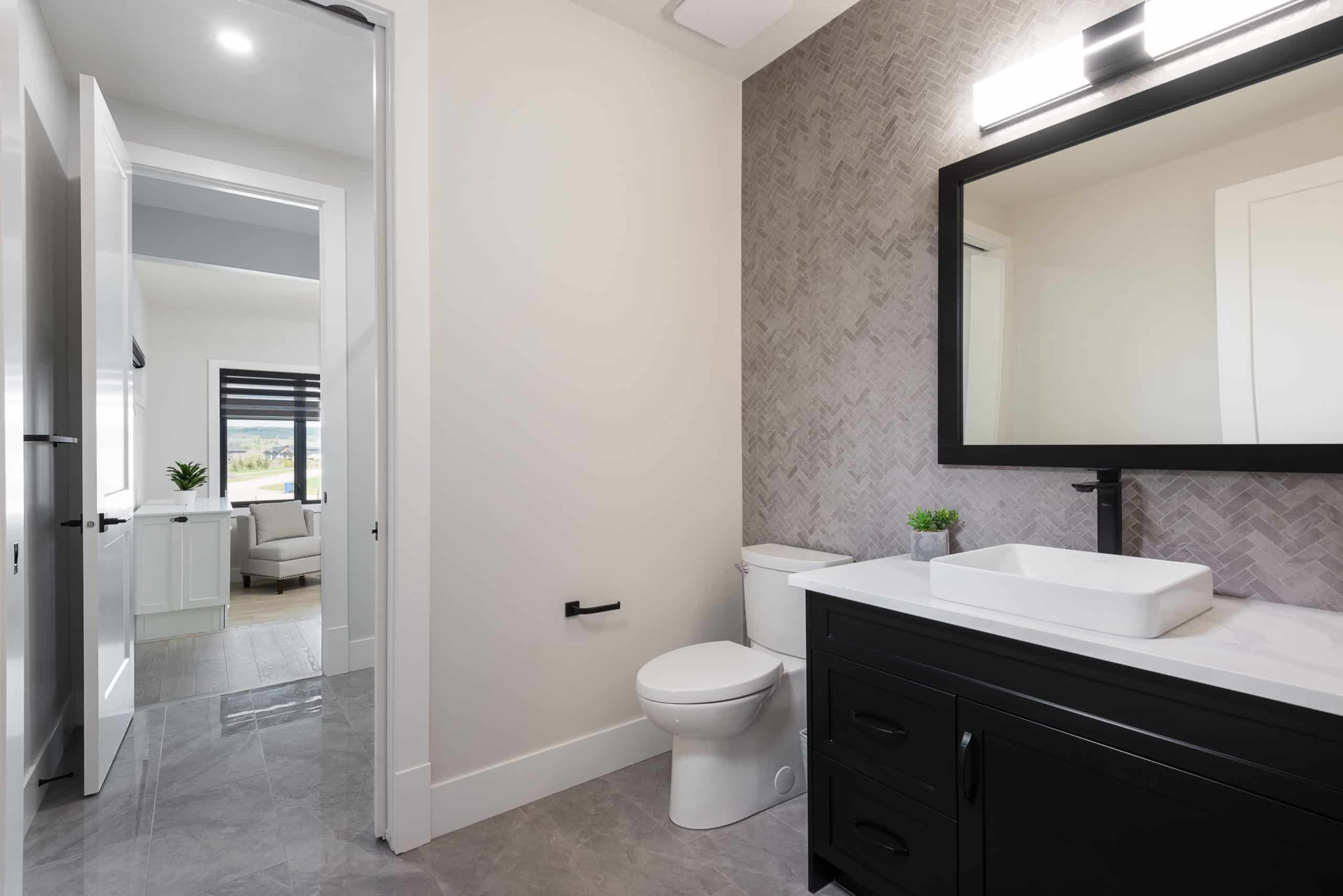 While the immediate landscaping was kept clean and minimal to allow the architecture to shine, the overall site design was created with future expansion in mind. Flat grading and strategic hardscaping allow for the effortless addition of garden beds, raised planters, water features, or even an outdoor kitchen and entertainment zone down the road. Electrical and irrigation rough-ins have been pre-planned to simplify future upgrades, and the walkout basement opens to a large, gently sloping lawn – ideal for children’s play, pets, or private gatherings. The relationship between the home and its natural surroundings was a key consideration from day one, ensuring that every element feels intentional, integrated, and ready to grow with the family over time.