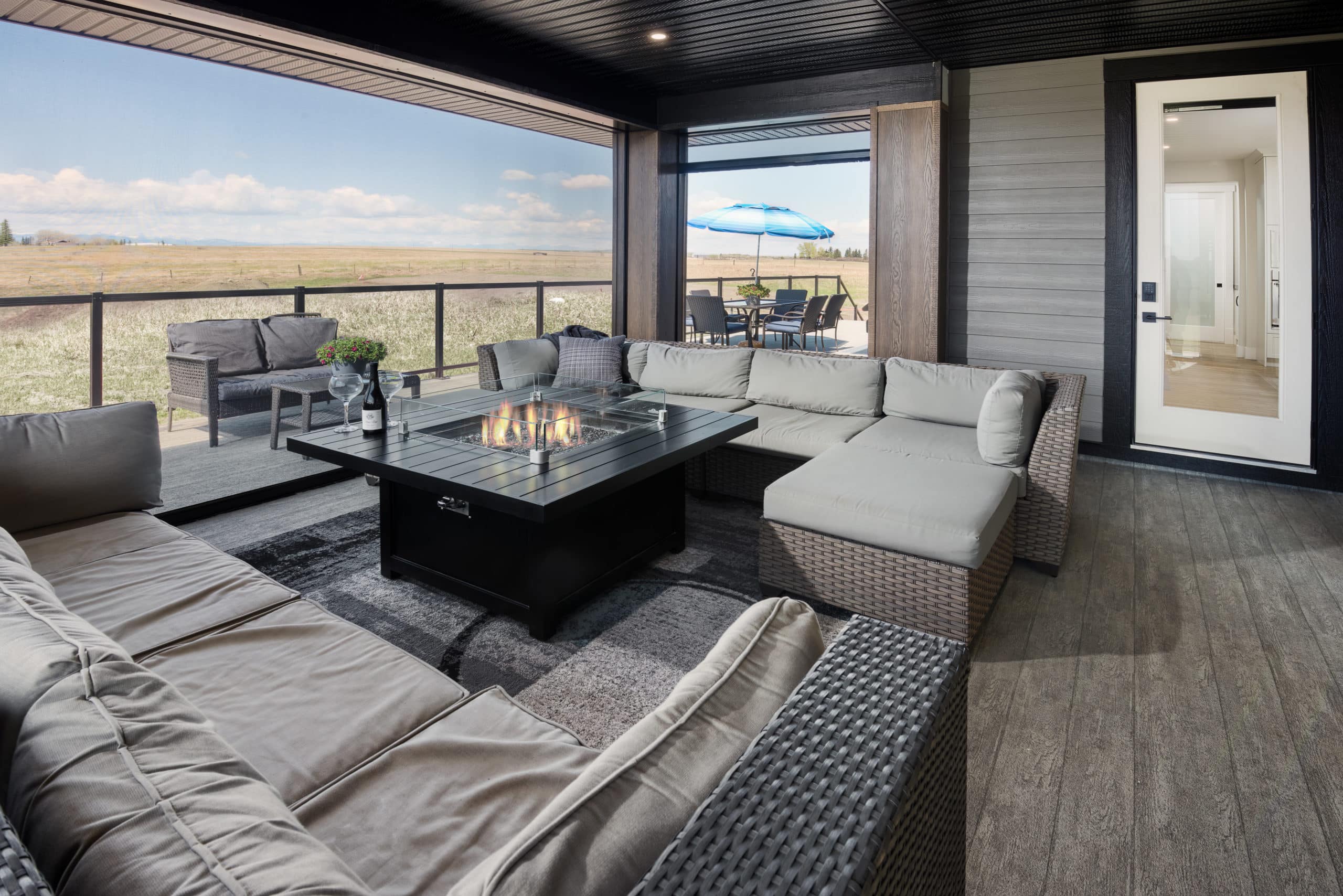 • A striking prairie-style exterior paired with a sleek modern interior and a covered patio, providing the perfect space all year round.