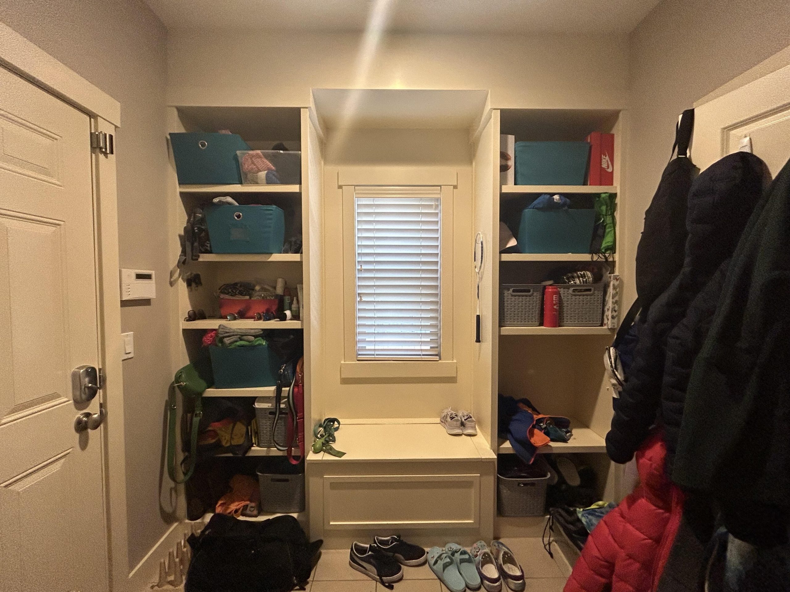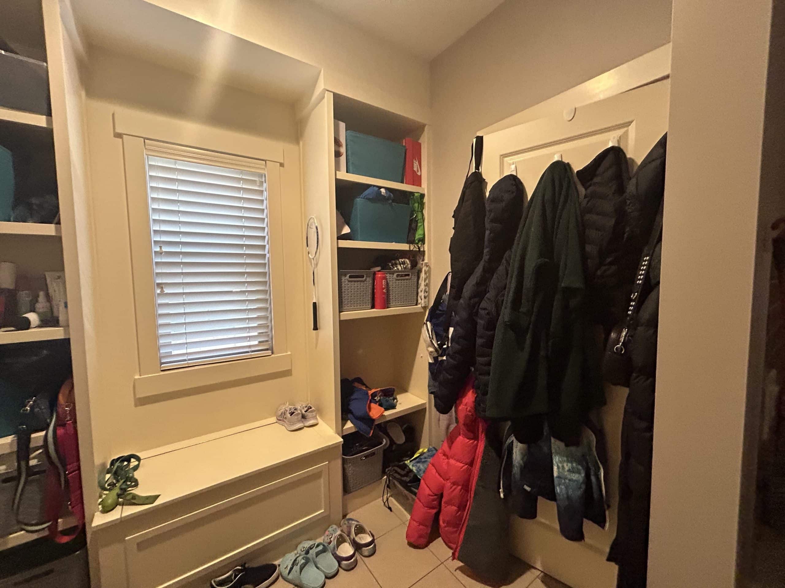 • Purpose-built mudroom and laundry area with clean lines and hidden storage behind custom cabinetry.