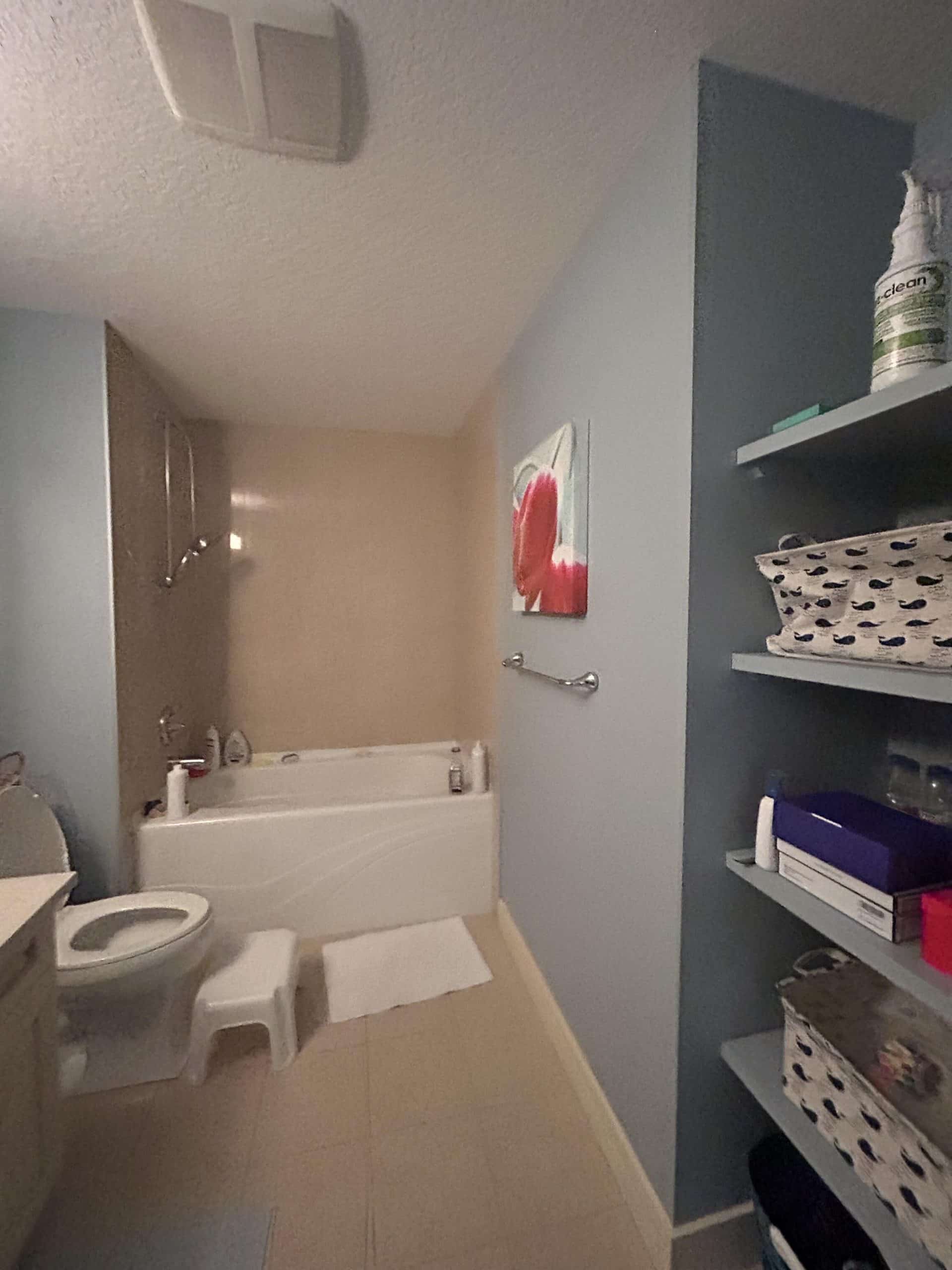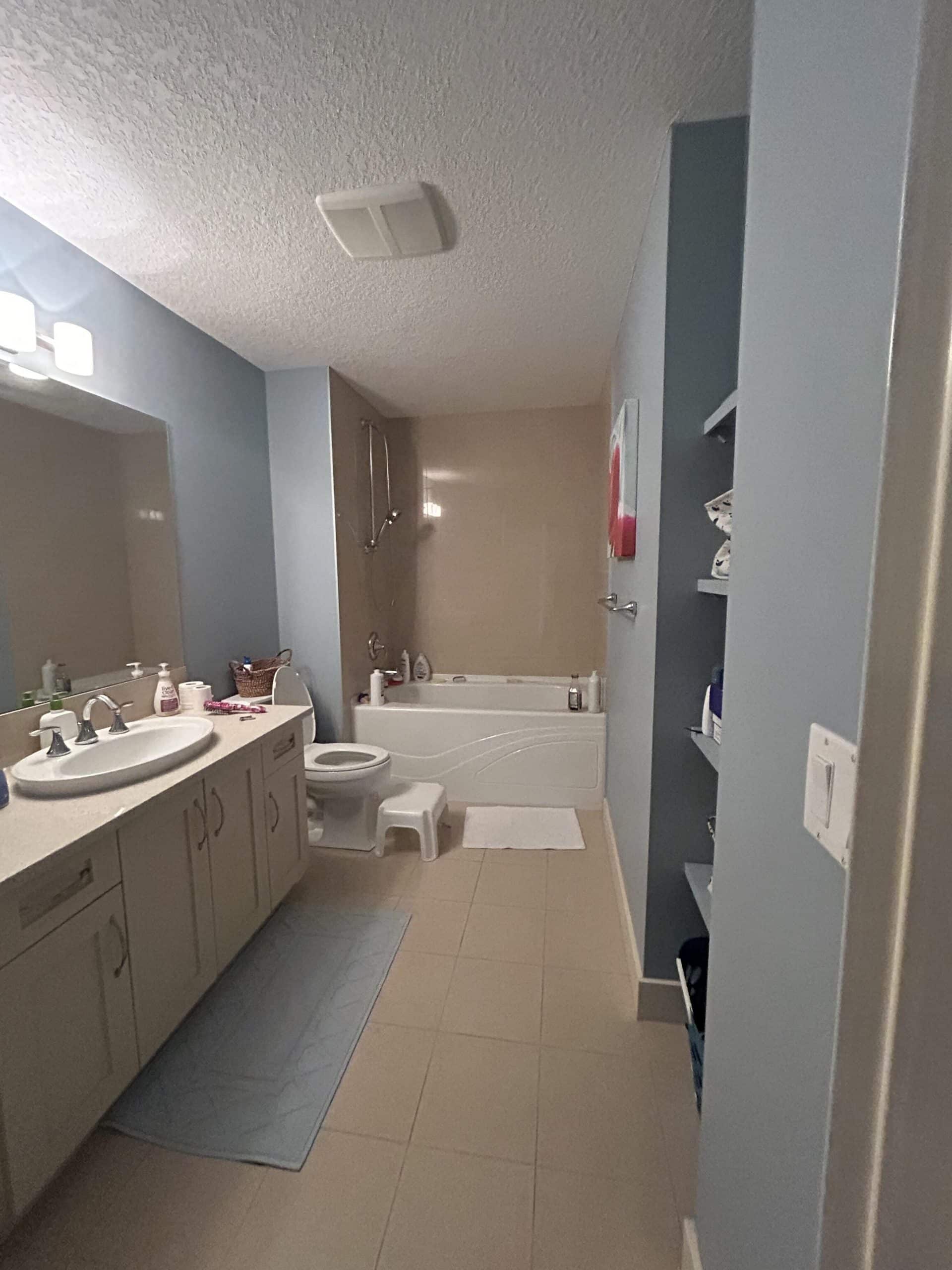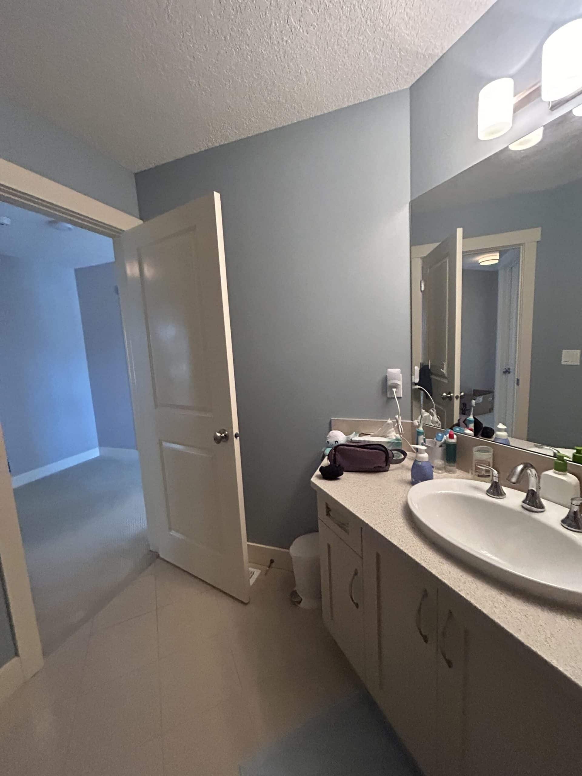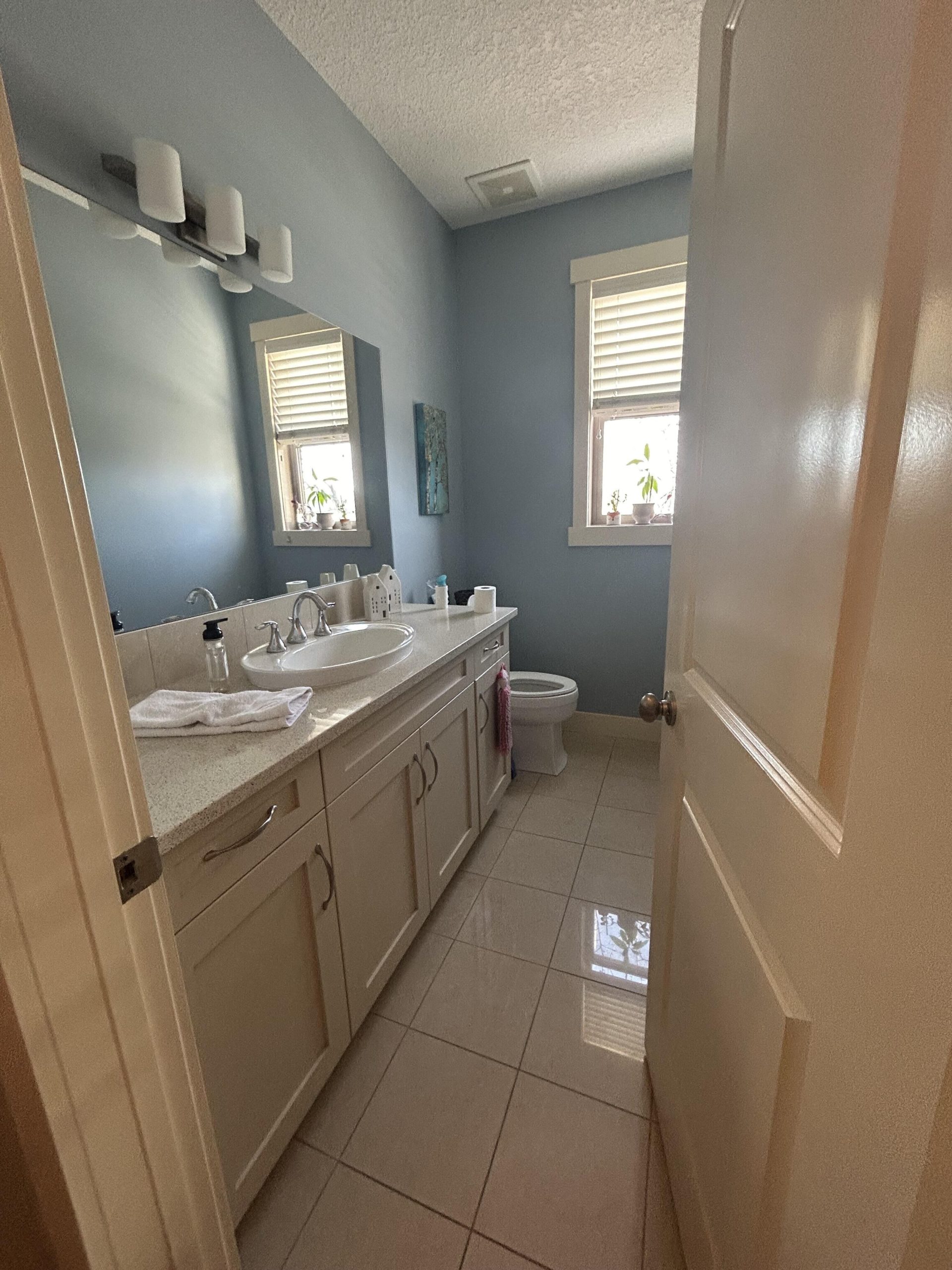 • Generous built-in cabinetry provides easy-to-reach storage for towels, toiletries, and family essentials.