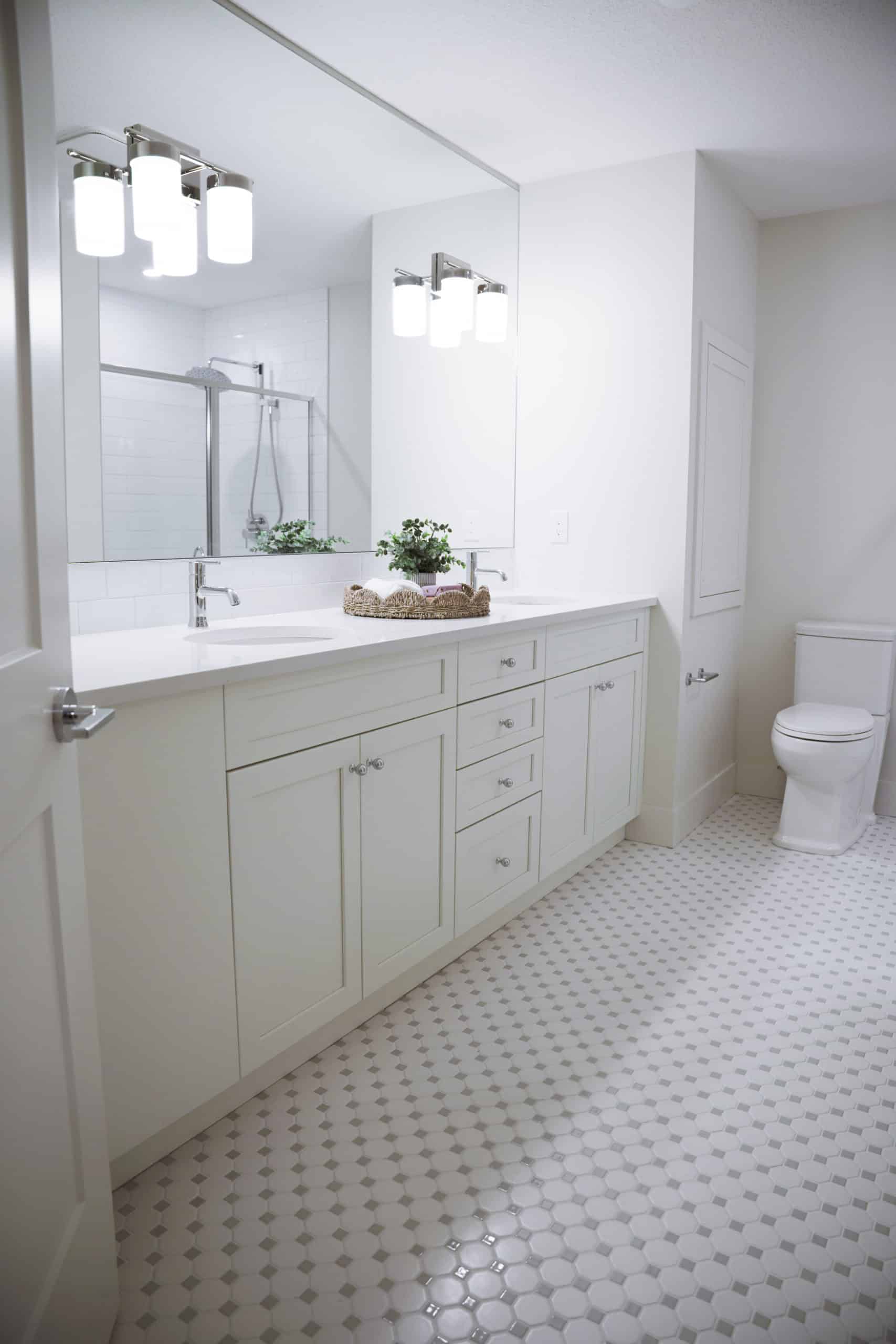 • A double vanity gives siblings plenty of space to get ready at the same time.