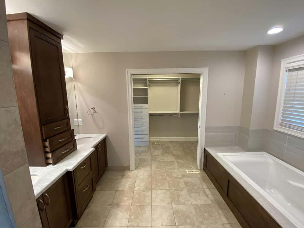 Underfoot, heated flooring adds an extra layer of comfort, turning cold winter mornings into a delight. Overhead, strategic lighting creates ambiance: bright and functional when needed, soft and ambient when it’s time to wind down.